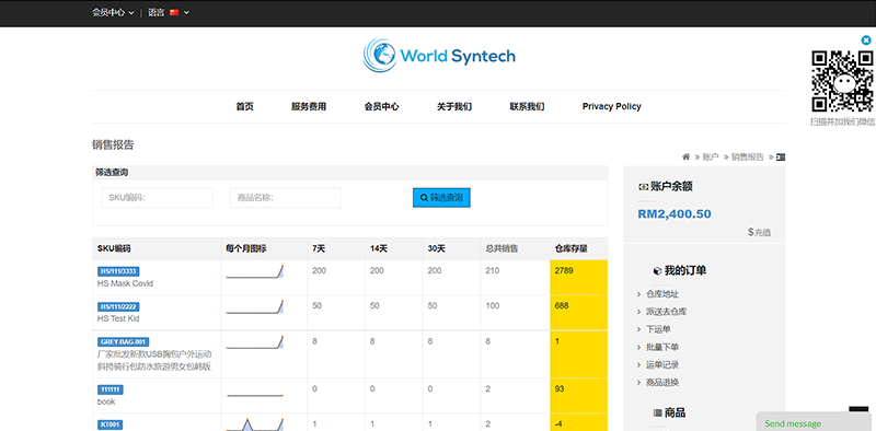系统有库存信息,库存警报,销售分析,充值记录,订单记录等等报告。当merchant余额过低时,系统也会提醒merchant。